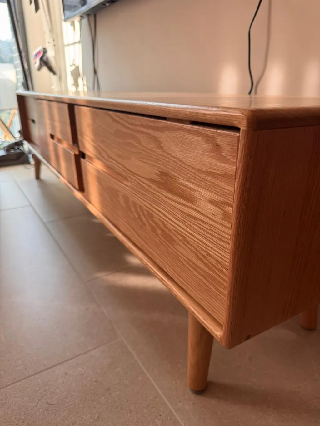 採用北美進口FAS級橡木,木紋自然細膩,質地堅固耐用,為您的客廳增添優雅氣息。設計貼心實用,配備2個大容量櫃桶及2塊順滑移門,收納空間靈活多變,輕鬆整理雜物,保持家居整潔。特別加入防撞膠粒設計,避免開關時產生噪音或碰撞損傷,細緻呵護您的家人與家具。